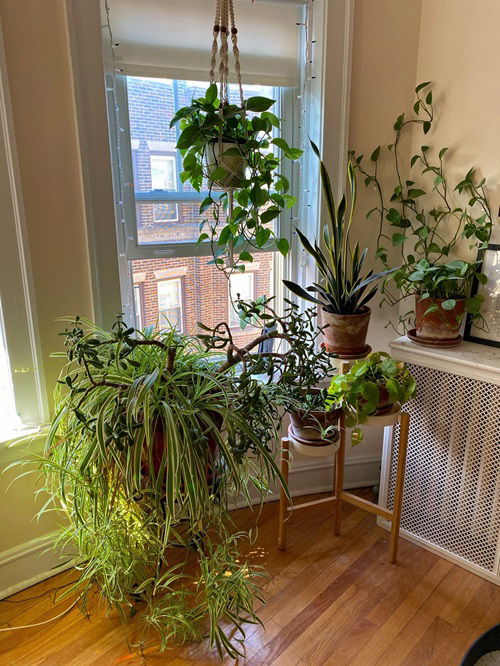Low sunlight is not an issue for spider plants; therefore, in winter, you can move your plant to a room with indirect light but higher humidity levels, even if it doesn’t get much sunshine, such as in a bathroom or kitchen.