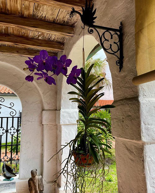 Nothing’s more graceful and inviting than two beautiful hanging orchids at your home entrance. Just look at those lush roots!
