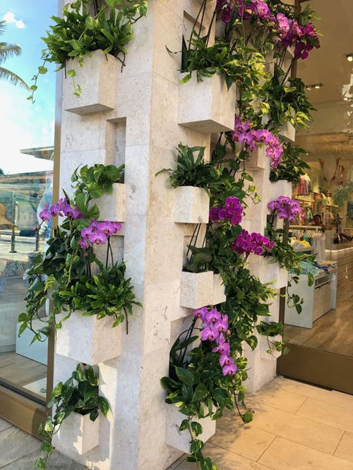If you have the option, you could fill these concrete planters and create a vertical orchid jungle.